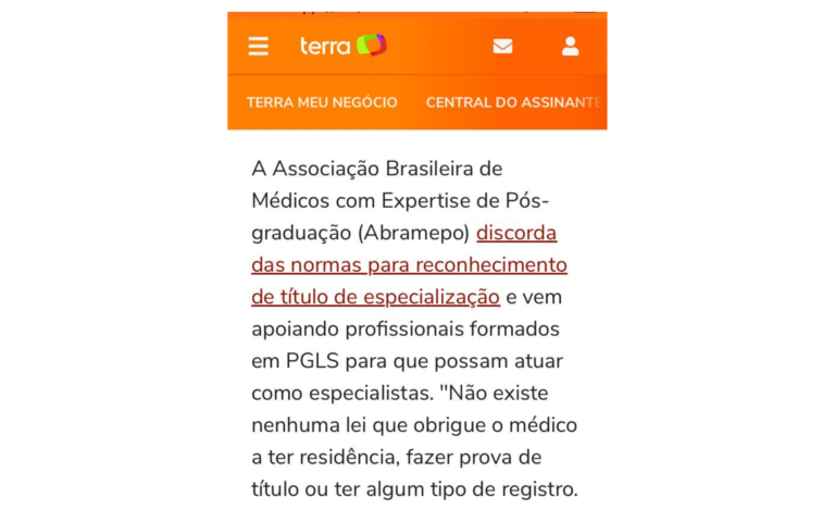 Portal Terra destaca a causa da ABRAMEPO